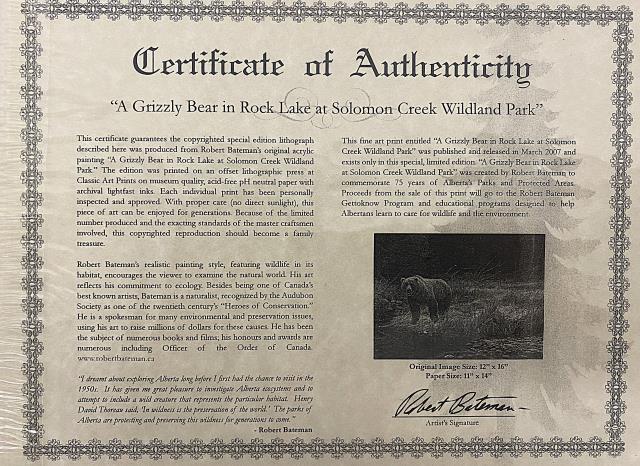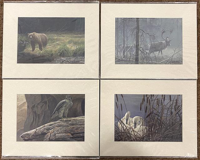 Set of 4 Bateman Prints - "A Grizzly Bear in Rock Lake at Solomon Creek Wildland Park"