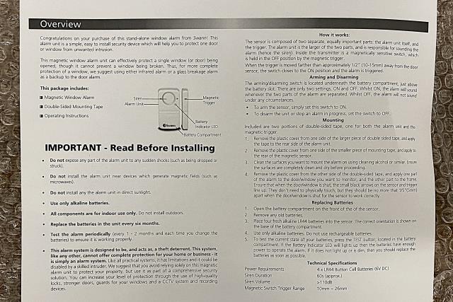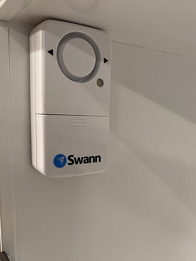• Swann magnetic door alarm "no batteries included"