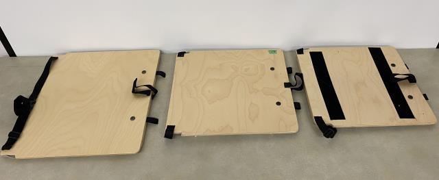 2 boards appear to be in new condition, light scuffing and chipping in wood.