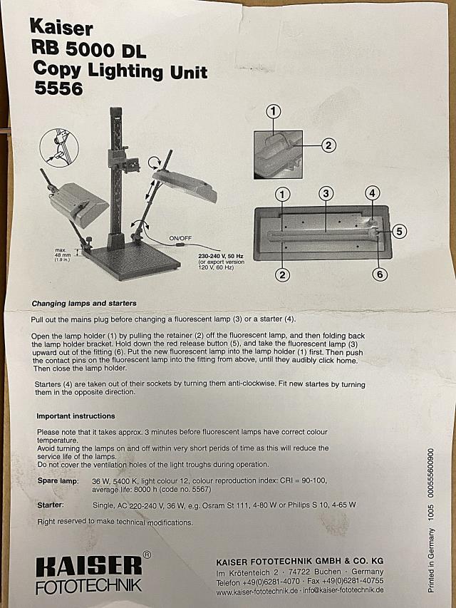 • Model: Copy Lighting Unit RB 5000 DL