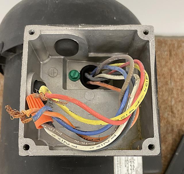 Dusty, light scuffing on metal, wiring has been cut.