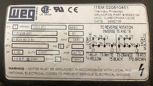 • Motor: WEG single phase