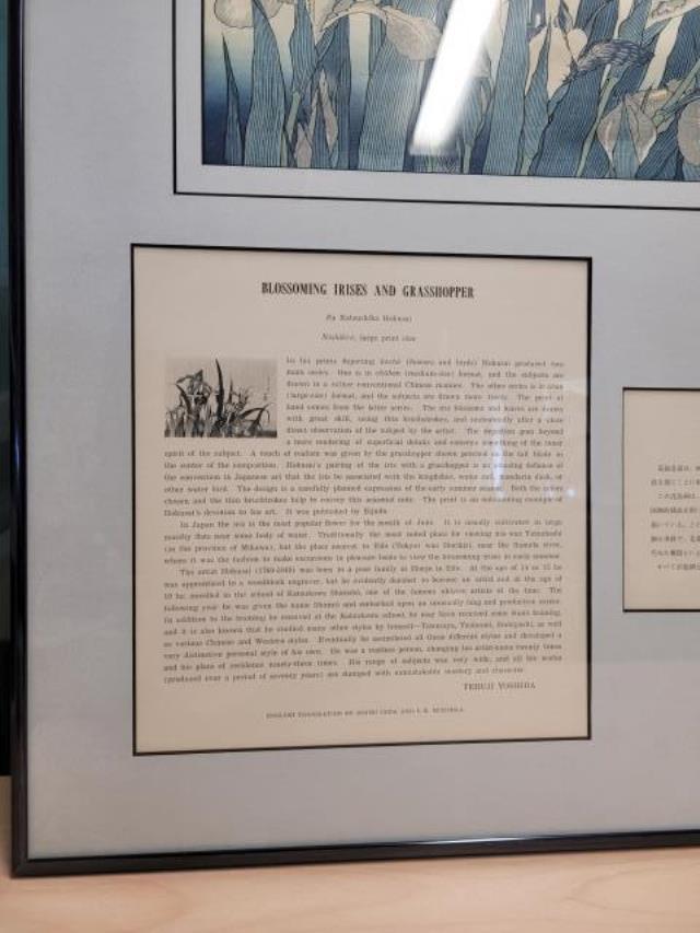 Title: Blooming Irises and Grasshopper