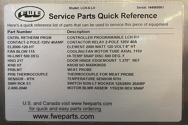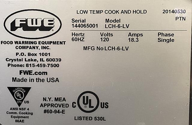 • Make: Food Warming Equipment Company, INC.